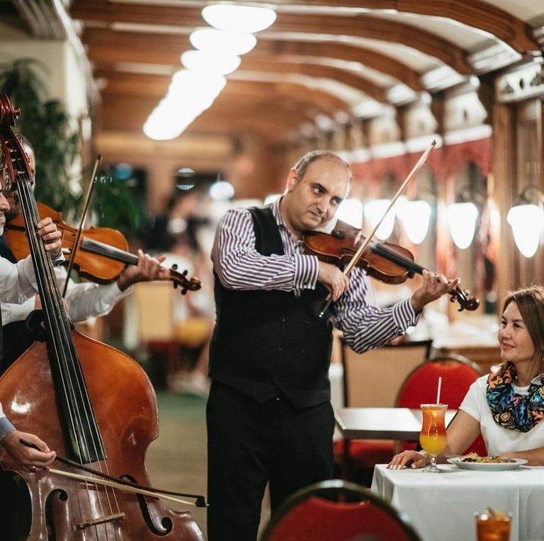 Enjoy an unforgettable evening cruise along the Danube, featuring a traditional Hungarian dinner and live music onboard. Sail past Budapest’s illuminated landmarks while experiencing local flavors and melodies, creating a perfect blend of sightseeing, culture, and relaxation.